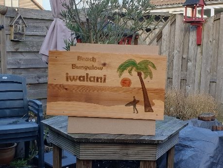 Vraag is ook komt het bord buiten of binnen te hangen, daar zal de duurzaamheid van het hout belangrijk zijn.